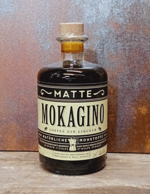 Der Mokagino ist ein Kaffee-Gin-Likör von zwei Berner Handwerksbetrieben. Kräftige Robusta Bohnen von Kaapi Royale aus Indien werden durch Adrianos Coffee geröstet. Der frisch gemahlene Kaffee wird in der Matte Brennerei zusammen mit unserem Dry Gin, Orangenzesten und Wacholderbeeren zu einem fruchtig, kräftigen Likör mit einem intensiven Kaffeearoma vollendet.