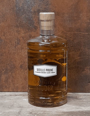 Beim Vieille Prune Oloroso Sherry Cask Finish wird ausschließlich mit Schweizer Pflaumen gearbeitet. Diese werden zu Beginn fermentiert und destilliert. Das Destillat wird anschließend einige Monate in Ex-Sherry-Oloroso Fässern gelagert und zur Abrundung leicht gesüsst.